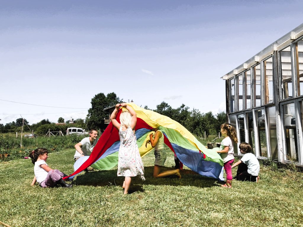 For six months, as part of this project, we offered a monthly creative workshop for children aged 3 to 10. The topics ranged from parachute games and folk dances from around the world to children’s circus, percussion instruments, acrobatics, and theatre. In addition, free play sessions were held regularly once a week in our “classroom.”